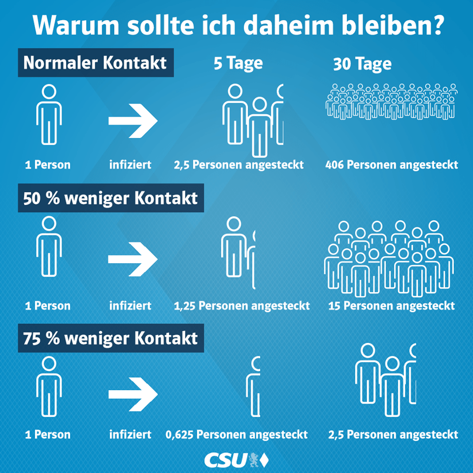 Je weniger Kontakte jeder Einzelne von uns hat, um so geringer die Verbreitung. Sollte doch einleuchten, oder ?