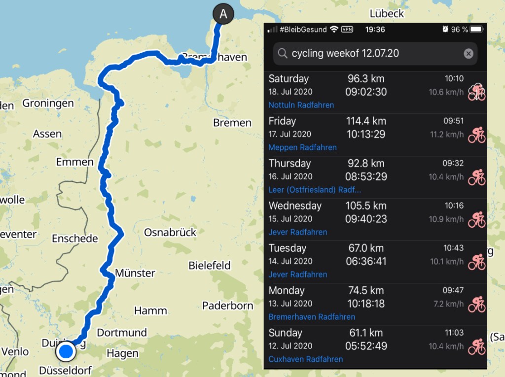 In insgesamt sieben Tagen (inklusive einem Friendshipday in Fries- und Wangerland) bin ich dann die Strecke von Cuxhaven in den Ruhrpott zurückgeradelt.