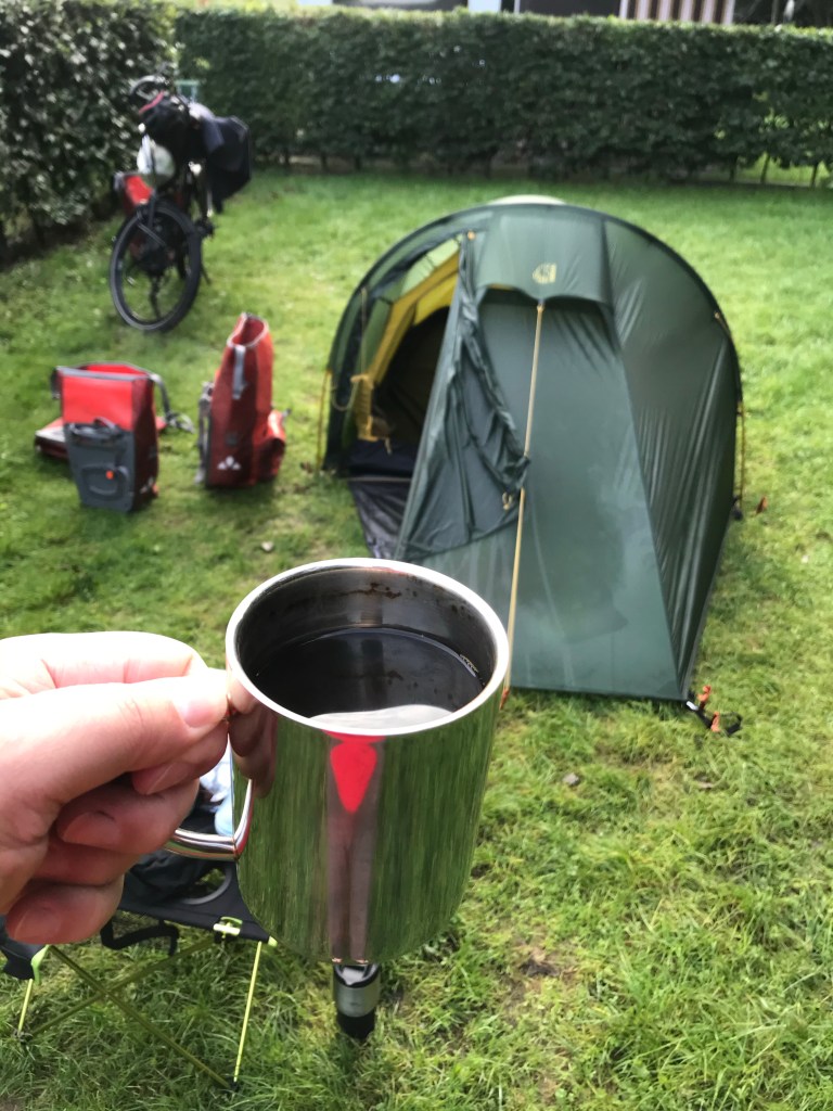 Kaffee muss sein und ein trockenes Zelt auch. Mit reichlich Verspätung ging es dann doch mal los. Keine Ahnung, wie all die anderen das hinbekommen.