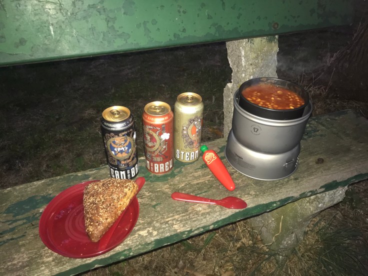 Dann ging’s ans Essen kochen. Mit dem Trangia Spirituskocher ging das super 👍. Bud Spencer Beans gab’s. Lecker 😋 war’s.